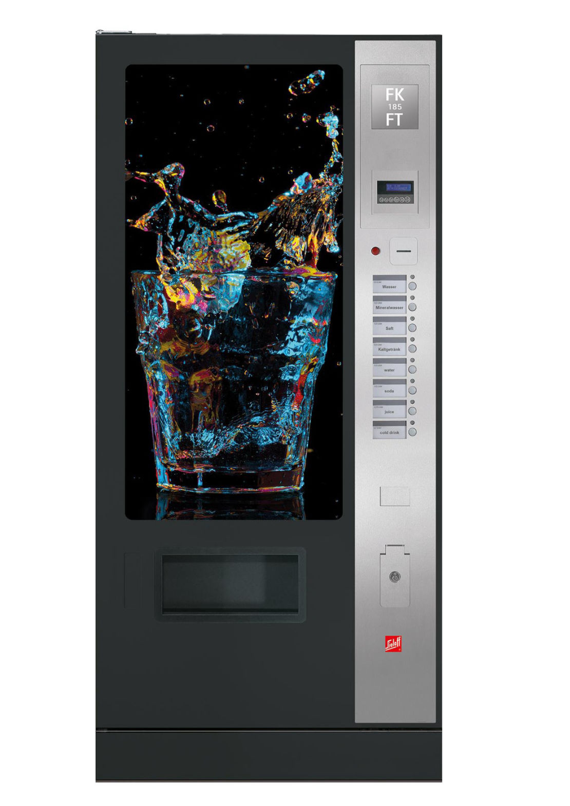 Elegant ist das dunkelgraue Gehäuse mit schwarzer Tür, schwarz eloxierten Aluminiumprofilen und einem großen, rahmenlosen Hartglas-Touch Screen: Das ist Maestro Touch, der neue High-End Heißgetränkeautomat.